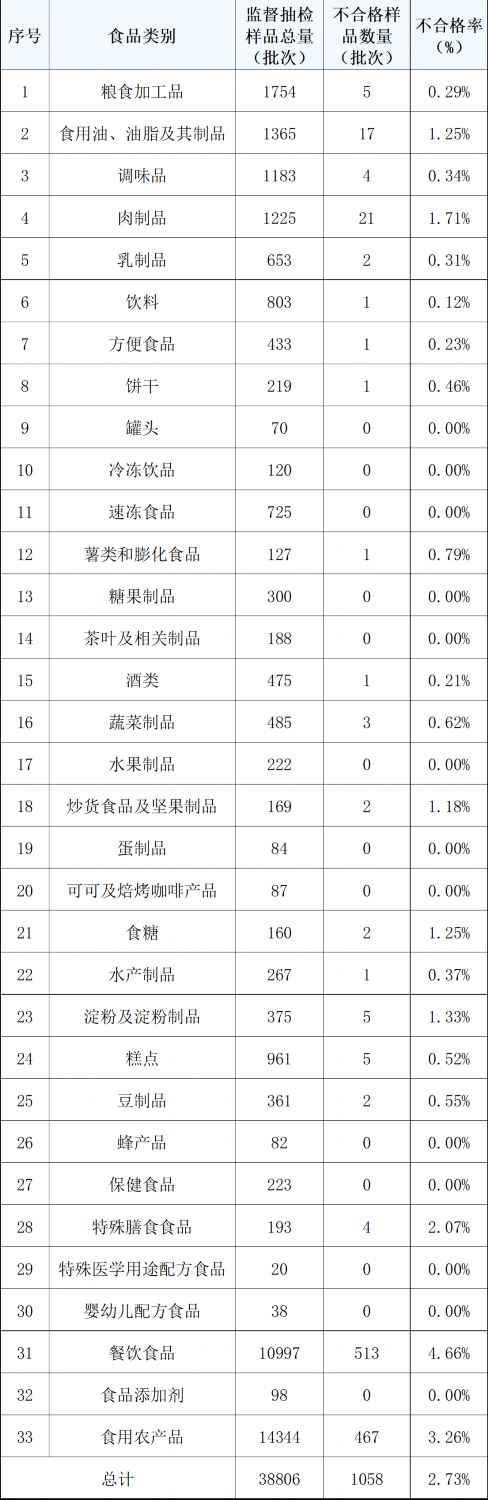 上海市市场监管局引见,保健食物、生果成品、茶叶及相关产物、可可及焙烤咖啡产物、罐头、特殊医学用处配方食物、速冻食物、食物添加剂、冷冻饮品、蛋成品、蜂产物和婴长儿配方食物等13个食物大类的及格率均为100%。发觉食物平安违法行为,质量目标等。完成食物平安监视抽检38806批次,